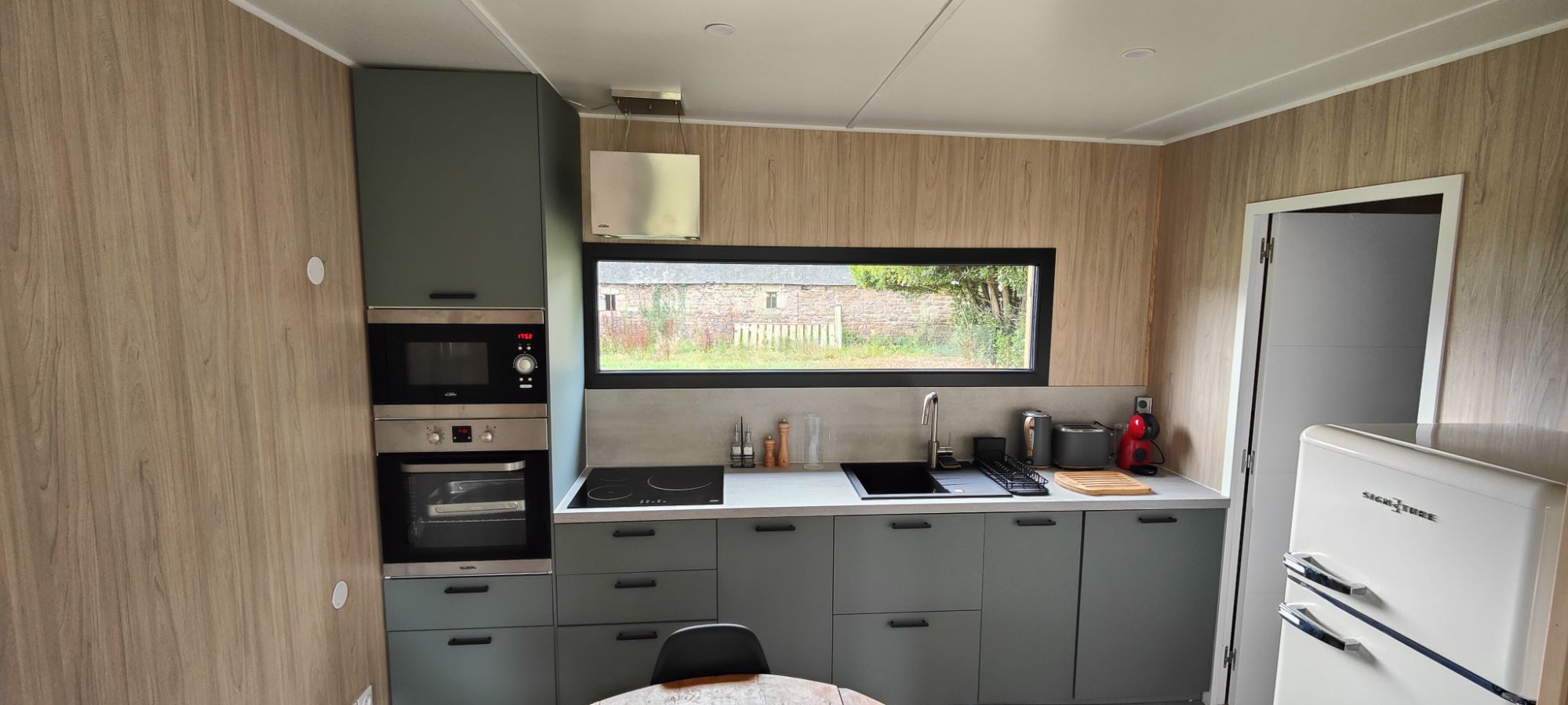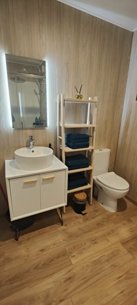 Vous y trouverez un canapé 3 places convertible en lit de 140x200cm ainsi qu’une télé muni des chaines classiques et des abonnements VOD